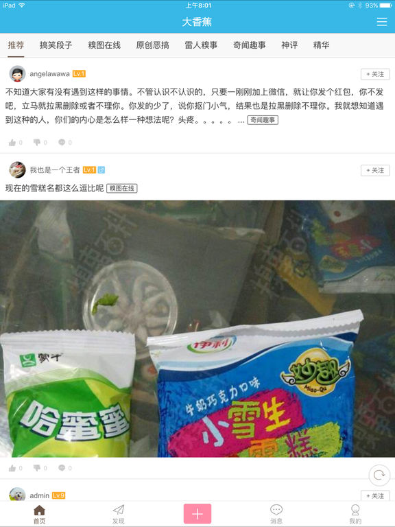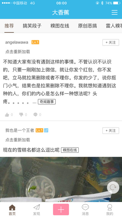 大香蕉-精选搞笑图片、视频,是最近在免费榜单上非常活跃的一款应用,它是一款集很多笑话、恶搞类的文章于一身的应用,画面制作精良。而且实时更新热门人气笑话,新鲜糗事,内涵语录,免费无广告! 每日更新,大量段子和笑图 评论更精彩,在神人出没的内涵段子中,评论可能比原段子更精彩 支持原创,人人都可参与原创,并审核其他用户的原创段子