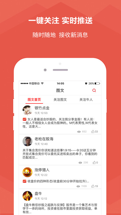 呱呱股票—免费的财经股票直播平台 平台入驻全国知名的财经牛人、大V、股票高手,累计服务数百万用户,7X24小时,不间断在线视频直播,每日解读股市大盘走势,与用户保持全面深入的交流。看视频直播,抓涨停牛股-就上呱呱股票! 在呱呱股票,你可以 【看视频、学炒股】 高清视频流,极致的视频体验。视频教学,一学就会。跟着牛人,学习股票、理财、投资、财经的基础知识,逐步掌握炒股技巧。 【围观牛人炒股】 3000+视频直播间牛人实时在线视频直播;1000+牛人图文直播,7X24小时不间断生产海量干货课程。技术分析、基本面分析、价值投资,助您找准适合自己的投资方式。 【牛人在线 有问必答】 全平台讲师在线答疑,个股、行业、盘面,随时问,随时答。 【随时接收牛人观点】 关注牛人后,牛人发布的每条观点都能实时收到,不错过每一个重要的投资时刻! 对于产品有任何疑问或建议,请联系我们: 客服QQ:158777852或158777856 客服电话:010-57835800-6878 客服邮箱:shufeng@17guagua.com Guagua stock - free financial stock live platform Platform settled in the national well-known financial genius, big V, stock master, the cumulative service of millions of users, 7X24 hours, uninterrupted online video broadcast, daily interpretation of the stock market trend, and keeping a comprehensive and in-depth exchanges with uses. Watching live video, grab the daily limit of Niugu - on the Guagua stock! In the Guagua stocks, you can [See video, learn investing in stocks] High-definition video streaming, the ultimate video experience, Video teaching in which users can learn as fast as they can. You also can follow the stock masters to learn stocks, financial management, investment, financial basic knowledge, and gradually grasp the stock tips. [ watch how stocks master invest in stocks] 3000 + masters show how to invest in stocks.1000 + masters give text lives, 7X24 hours of continuous production of massive serious good courses. Using Technical analysis, fundamentals analysis, value investment help you identify their own investment. [answer all the questions immediately] Full platform lecturer online Q & A, stocks, industry, disk, at any time. [accept masters’ view at any time] When you concerned about the master, the master will release every view and you can receive those views in real time so that you will not miss every important investment moment! If you have any questions or suggestions on the product, please contact us: Customer Service QQ: 158777852 or 158777856 Customer Service Tel: 010-57835800-6878 Customer Service E-mail: shufeng@17guagua.com