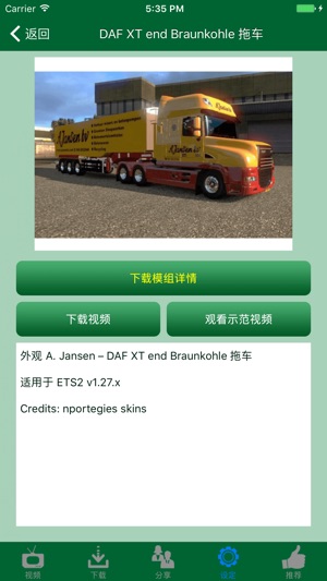这是一个非官方的【欧洲卡车模拟2】模组App。 厌倦了四处寻找有趣的【欧洲卡车模拟2】的模组,但最终浪费时间和金钱,下载和设置一些枯燥无味的东西?不用再搜索了! 这App提供了【欧洲卡车模拟2】的模组,可以从我们的服务器下载,无须缴付额外费用或定期订阅。根据模组的截图,视频和说明,你就能决定所需的时间和金钱是否值得备份游戏,下载,安装和尝试使用这些模组。 这游戏可于网站 http://store.steampowered.com/app/227300/Euro_Truck_Simulator_2/ 上购买。 这模组App暂时收编了70多个设计模组,这些模组都相当有趣。当有更多有趣的模组…