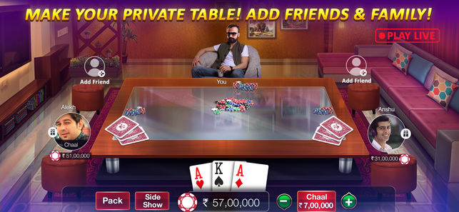 Download Teen Patti Gold and play the new 3rd card JOKER variation! Enjoy Teen Patti Gold, live with real players from around the world. Play with anyone, anytime, anywhere, in your language! You can play in English, Hindi, Marathi, and Gujarati. All in the same game. More Free-Chips: - Download no…