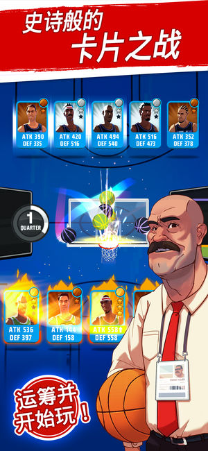 《篮球明星争霸战》让你能掌握这一切。选拔超常的球员,规划你的策略,让你的球队与来自全球各地的真正对手们在卡片热战中放手一搏。在激情中勇往直前争取领先。在关键时刻,置身于3D 球场中一显身手!是传球还是打出三分球?你的选择将决定你是取胜还是失球。 有许多方式可赢得强大的珍稀球员并让其与不断进化的对手们竞技。在《篮球明星争霸战》中,为明星地位投篮吧! 《篮球明星争霸战》特色: · 数百张全动画3D球员卡可供选才,收集,及演化。可用特殊技巧,奖励等来强化你的球队! · 用无穷的战略及玩法来提升自己的球员卡管理 · 球场瞬间动作包括抢球,传球,投篮,和灌篮。你能用压哨投来夺取胜…