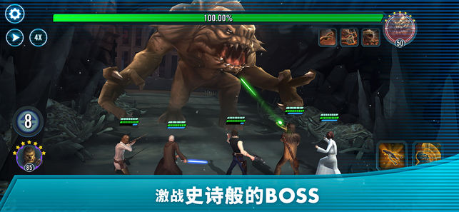 带上您最喜欢的黑暗面和光明面英雄驰骋于各个标志性地点,成为银河系主宰,实现您的《星球大战™》梦想。 从所有时代中挑选中意的角色,创建并量身打造您的梦幻小队,包括来自《游侠索罗™:星球大战外传™》、《星球大战™:最后的绝地武士™》以及《侠盗一号™:星球大战外传™》中的新角色。 投身于回合制角色扮演战争,面对巨大的Boss,驾驶千年隼号等传奇飞船遨游太空,让您的战术更上一层楼! 打造终极战队 反抗军首领?帝国骨干?征召来自《星球大战™》宇宙的英雄和其他角色,组建强大的光明面或黑暗面队伍,一切由您决定。在这场史诗级角色扮演游戏中制定战略和关键行动。挑选技能互补的队员去迎战强敌! 成为银河主宰 击…