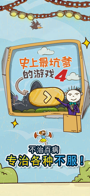 描述: 【获得荣誉】 曾获AppStore益智解密类游戏No.1; 曾排名AppStore中国区总榜前3,香港地区第1、台湾地区前5名; 曾被中央、广东、港澳台等数十家媒体采访报道; 【产品简介】 《史上最坑爹的游戏4》延续了前3款游戏的风格,简单粗暴、非常思维,史小坑的“坑爹”精神已经是这款系列游戏的灵魂。 但与以往不同的是,这一次的关卡的创意点子是由热爱坑爹游戏的粉丝们所提供,“坑爹团队”希望这一次能在游戏中与广大玩家一起坑个够、坑个爽! 我们广发英雄帖,从无数玩家的奇思妙想中精心选出24个最具“坑爹”精神的方案,最终制作发行了这款《史上最坑爹的游戏4 》。 在游戏中领略到生活的乐趣,…