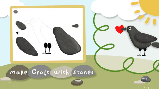 孩子们天生就对石头着迷。 在这款应用里,孩子们可以学会用鹅卵石制作各种有趣的手工(人,昆虫,动物,花卉...),并和他们的作品进行互动游戏。 [视频]:http://v.youku.com/v_show/id_XODEyNTg0NTAw.html 这款应用适合3-6岁的儿童。 产品特点: 1. 22个课程,引导孩子如何用鹅卵石制作漂亮有趣的手工; 2. 课程操作简单,充满乐趣,课程包括:鸟,瓢虫,甲虫,狗,人,怪物,熊,石头人合唱团,向日葵,四叶草,蘑菇等等; 3. 提供了10种颜色,可对手工进行上色; 4. 12款精彩游戏:匹配虫子、啄虫、喂小鸟、沙滩跑酷、手势记忆、…