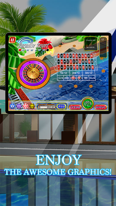 Welcome to Casino Paradise Resort Roulette! Get ready to win big with this real Vegas style roulette game in a Paradise beach environment with incredible graphics and settings! This game is available on iPhone, iPod and iPad. You will enjoy all the fun without having to take any cash out of your pocket. - Real life Vegas style roulette - Practice your strategies without losing real money - Place your bets and enjoy the game - Use Max bets to play aggressively - Have fun in a Paradise Resort Casino environment. - Play with friends in our Leaderboard. - Enjoy the awesome graphics and have great fun! Get ready to place your bets and win! Download Casino Paradise Resort Roulette now. Enjoy this amazing game to the max!