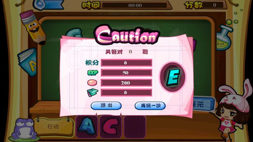 游戏玩法: A 一秒内记住正确的英文单词 B 拖拉上方出现的字母至下方空格内组成正确的单词 C 在组成完成单词前,可以拖拉错误的单词回到上方重新拖拉正确的字母 D 连续回答正确5题,可以获得时间奖励5秒,回答错误将扣除3秒时间