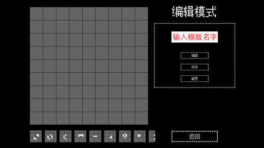 生命游戏,又称康威生命棋,是英国数学家约翰·何顿·康威(John Horton Conway)在1970年发明的细胞自动机。这是一个零玩家游戏。它包括一个二维矩形世界,这个世界中的每个方格居住着一个活着的或死了的细胞。一个细胞在下一个时刻生死取决于相邻八个方格中活着的或死了的细胞的数量。如果相邻方格活着的细胞数量过多,这个细胞会因为资源匮乏而在下一个时刻死去;相反,如果周围活细胞过少,这个细胞会因太孤单而死去。实际中,玩家可以设定周围活细胞的数目怎样时才适宜该细胞的生存。 本游戏增加了关卡模式,自由模式和模版编辑功能,玩的愉快~