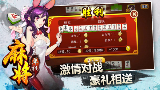 【游戏介绍】 单机麻将是一款集国标、四川麻将(血战到底、血流成河)、二人麻将、长沙麻将、广东麻将、上海麻将等多种麻将玩法为一身的单机麻将游戏。 【游戏特点】 1)单机不耗流量,无须注册,人机对战,即开即打! 2)集多种玩法为一身,持续更新,总有一款适合你! 3)打牌、冲榜、完成任务,娱乐之间轻松Get成就! 4)即时参赛,多重奖励拿到手软! 【联系我们】 客服电话:4006305518