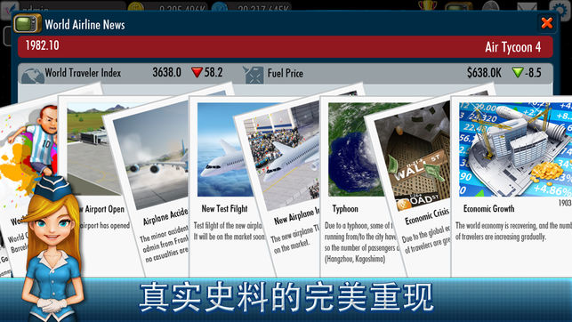 欢迎来到《航空大亨4》的世界! 权威的单人回合制航空管理模拟游戏,完整传承 受全球玩家青睐的《航空大亨Online2》的精华设计。 在詳盡的統計數據支援下建立及管理全球的航班 現在, 讓全球旅客準備乘搭您的航班, 衝上雲霄! 遊戲特色 : - 逼真、绚丽的3D画面 - 增加小游戏(着陆模拟) - 灵活自定义的回合制游戏 - 与最多24位电脑玩家同台竞技 - 丰富多样的游戏设定 - 由您操控遊戲內的 150 款真實飛機型號及全球 500 個機場 - 多元化的機場及航班管理 - 多種飛機及機場升級 - 購買及賣出已使用的飛機 - 詳盡及多款不同地圖選擇 - 掌管客運及貨運航班 - 遵從歷史的…