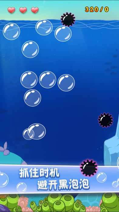点泡泡游戏是一款点击消除类休闲游戏。 游戏的目标就是尽全力阻止泡泡到达水面,泡泡到达水面后会自动爆开。如果自动爆开的泡泡达到三个,游戏就会失败! 你可以用手指点击泡泡或者拖动手指划过泡泡,两种方式都可以把泡泡戳破。 游戏还支持多点触碰,你可以几个手指同时戳破多个泡泡。当单手指忙不过来的时候,其他的手指一起上吧。 那么,快来挑战吧! 提示: -------黑色泡泡被戳破后会出现大片水墨,处于水墨中的泡泡无法被点中 -------黑色泡泡会直接飘出屏幕,不会自动爆开。 -------大泡泡点开后会分裂出三个泡泡