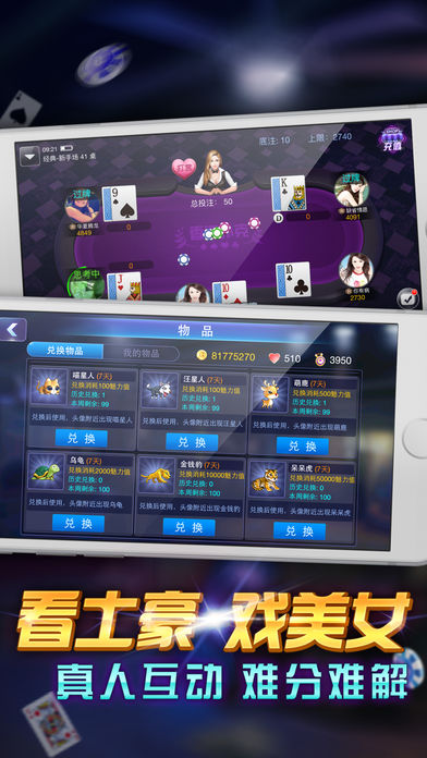 梭哈(ShowHand)又名同花顺、港式五张、Five Card Stud。梭哈是赌神等香港赌片中采取的赌法,在全球范围内流行300多年,在纸牌游戏中的地位至高无上。目前,用手机玩梭哈游戏的玩家,人数逐年翻倍,而其中很多玩家,从接触《梭哈王》开始,就被她卓越的品质吸引。 【游戏特色】 1. 采用8-A玩法,规则简单,上手容易,大牌拿的很轻松 2. 万人在线,秒开牌局,牌技好,一夜成为资产大亨,创造财富神话 3. 真人玩牌,紧张刺激,道具互动,乐趣四溢 4. 顶尖防作弊技术,历史牌局追踪,游戏环境公平公正 5. 免费金币,各种派送,梭哈,根本停不下来 6. 精美荷官联手顶级声优,倾力打造绝妙视听享受,让你的感受很不一样 【特别声明】 在游戏《梭哈王》中,所有竞赛及抽奖活动与 Apple Inc. 无关,最终解释权归 梭哈王 所有。