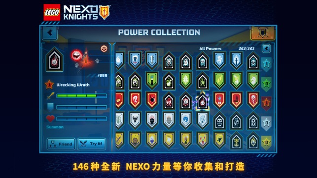 **注意** - 针对 iPhone 5、iPad Mini 2、iPad3 或更高版本设备优化。 推荐给 5-11 岁儿童玩耍。 大战石头魔兽大军 邪恶的摩彻克斯 和他的石头魔兽大军正在搜寻封禁力量,试图以此唤醒一种可怕的黑暗力量。NEXO KNIGHTS未来骑士团的英雄们必须运用NEXO骑士能量,赢得战斗,保卫骑士王国! 组合超强的合体NEXO能量 只有一种方式能战胜敌人的封禁力量,那就是— — 合体NEXO 能量 !只要把三块NEXO骑士能量盾牌组合起来,就能得到无与伦比的合体NEXO能量 — — 这将是制胜的关键。制定你的战略并使用合适的NEXO骑士能量盾牌,来组合成你所能想到的…
