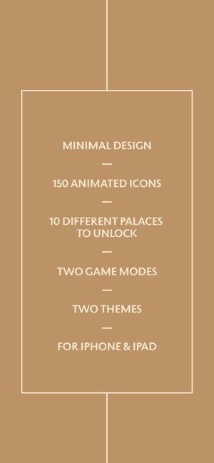 *** German Design Award Winner 2017 in the category apps *** *** Over 200k downloads *** *** #1 paid game in 5 countries *** *** Top 5 best paid games in 20 countries *** *** featured on the App Store in 115 countries in Best New Games *** Build Your Palace 是一款简约而具有挑战性的注意力、记忆力和感知力游戏。 评价: “再见 Can…