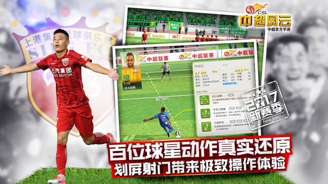 我们的联赛,我们的游戏! 国足加油! 【游戏介绍】 《中超风云》2017是由中超官方正版授权、胡莱游戏发行、泰昌骏丰监制及拱顶石游戏历时两年打造的全新3D国民足球手游。游戏数据同步中超联赛,且拥有高度还原的百位中超实名球星、震撼3D视觉比赛特效,全球领先的动作捕捉技术以及中超球星参与动作录制,是一款真正为中国足球爱好者量身定制的高品质足球手游。 【游戏特色】 最精准 国内首款真实3D场景手游,爆满的工体、虹口、天河等主场让你瞬间躁动起来! 最真实 游戏数据实时同步中超联赛,独家400段动作捕捉技术,代言人“武球王”亲身录制,加之段暄的倾情解说,全力营造出最真实的激烈比赛,给你身临其境的…