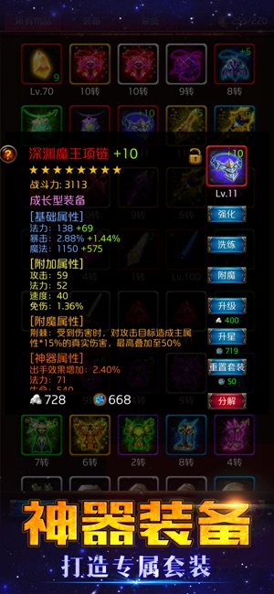 1.超强法球 吸血法球:对敌人造成伤害时吸取一定的血量 法连法球:使用技能时一定几率连击一次 残废法球:对敌人造成伤害时一定几率降低其攻击力 神秘法球:对敌人出手时附加额外伤害,对己方出手时附带治疗效果 更多强力法球等你发现! 2.特色符文 幸运符文:增加幸运,提升装备爆率 传送符文:传送到BOSS身边,刷装备利器 贪婪符文:增加金币获得 石化符文:攻击敌人时有一定的概率使敌人石化 重生符文:每场战斗可以重生一次 恢复符文:每回合恢复一定的血量和魔法值 3.炼金造装备,神装爆不停 特色炼金系统,使用图纸与材料可制造各种道具,极品神装由你来造! 4.装备可以换钻石,海量钻石免费得 每天都能…