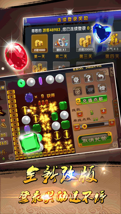 描述: 风靡彩票投注站,还原经典连环夺宝,挑战累积奖! 下载就送200分试拍,可注册多个账号,可以自动下注,即投机中! 玩法介绍: 1.游戏环节中,用户可自愿选择1-5个金刚钻进行游戏,每个金刚钻可使用游戏点数最低10点,最高5000点。在游戏过程中,游戏点数不足时,用户可充值获得相应游戏点数继续游戏,或退出游戏。 2.游戏过程共分为三关,三关分别在4×4、5×5、6×6的方形区域内派发宝石,还包括一种特殊钻头。 3.系统在每一关随机派发相应数量宝石,若有符合游戏规则的宝石组合,即可消除并获得相应游戏点数,同时系统继续派发宝石生成新的宝石组合,直至不再形成符合游戏规则的宝石组合。 4.在每一关累计消除15个钻头时,游戏进入下一关,第三关过关后游戏结束进入“龙珠探宝”。 5.游戏过程结束后,根据本场游戏所得游戏点数进入不同级别的中奖环节“龙珠探宝”获得最终点数。 6.玩家若在一场游戏中途离开,可自主选择退出游戏或保留游戏。若选择退出游戏,即视为玩家自愿 放弃游戏当前状态及本场游戏点数:若选择保留游戏,玩家应在即日30天的保留期限内继续本场游戏,超过保留期限视为自愿退出游戏。 再也不用在投注站里蹲坑了,快来这里连环夺宝吧!