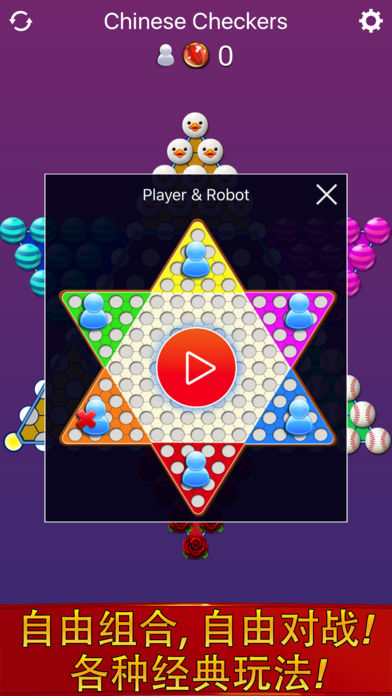 App Store最聪明的中国跳棋,全球超过100万次下载! 中国跳棋,简称跳棋(香港称为波子棋),是一种可以有二至六人同时进行的棋,棋盘为六星型,棋子分为六种颜色,每种颜色10或15枚棋子,每一位玩家占一个角,拥有一种颜色的棋子,有时人数少的时候,也可以用每人两种颜色的棋子一起玩。 中国跳棋的前身是正方跳棋,大约出现在维多利亚时代,最初的棋盘是正方形的,共有256格,开始时棋子分布在四个角落,以最快跳到对角为目标,规则和现在的中国跳棋类同。不久就有人改成星形棋盘, 称为Stern-Halma。三十年代起在美国开始流行,并改了Chinese Checkers的名字。当这种棋子传到中国时,因为改以玻璃弹珠作棋子,因此亦被称为波子棋(玻璃弹珠粤语称为“波子”)。 玩法 先将一种颜色的棋子全部放在一个角上,各人循顺时针或逆时针方向轮流走子,每次动一枚棋子,全部棋子先到达对角那一边的为赢家。棋子有两种走法: 1) 一枚棋子移动到相邻六格其中一格。 2) “搭桥”:自己的棋子(A)同一直线上有另一枚棋子(B),不限属于哪一方,大家之间没有任何棋子阻隔。如果B的另一方也没有棋子阻隔,A就可以跳到B的相反方向,而且和两枚棋子原来的距离一样。跳跃可以连续进行,直至跳无可跳为止。如果出现循环的话,可选其中一处停下。 游戏界面丰富,值得您与小伙伴们开心的玩耍!希望您喜欢我们的游戏!您的好评是对我们最大的鼓励!