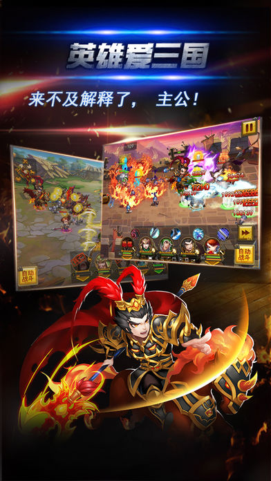 2017年最强三国来袭!颠覆传统,告别无脑! 【疯狂福利】 首日送10连,第二天就送神将赵云 【游戏特色】 独特微操:即时战斗,技能拖放、走位、集火,可操作改变战局,告别无脑游戏! 装备随机属性:杀怪掉极品,天天有惊喜,平民也可以逆袭! 主公天赋:多方向主公培养,瞬间切换输出、肉盾、辅助,最强主公等你来打造! 无尽组合:开场流、属性流、控制流、自杀流…无尽的武将组合,超出你的想象,快来打造属于你的最强流派! 带兵打仗:没有带兵也能叫三国,在这里你可以指挥千军万马!随着等级和能力提升,带兵的数量和能力也会随着提升! Q萌角色:颠覆传统,骑野猪的张飞,骑老虎的孙坚,还有跟多妹子等你带走! 玩家交流群:234122119