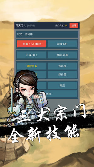 上古时期,修真世界因道魔之争,引发一场旷世大战,无数宗门道统丢失,大千世界破碎,化为小世界碎片,道魔之争不再是关注重点,各修士迫切希望复原上古功法,继续追寻长生大道 第一款小说式挂机修仙游戏 宗门,任务,修炼,战斗,宗门秘技,合成装备,炼制丹药,地图,妖兽,灵宠,灵植,自控属性, *在升仙塔与大家一起抢塔层获积分换资源 *每周一次的同阶玩家比试 *与好友组建自己的仙盟 *检验你千载修真成果的时候到了 *游戏特色: -修炼圆满渡天劫:炼气、筑基、结丹、元婴、化神、炼虚、合体、大乘 -每周一次的宗门大比 -小说式的货币体系:下中上极品灵石 -完成宗门任务获得贡献 -挑战宗门前辈升级你的洞府 -…