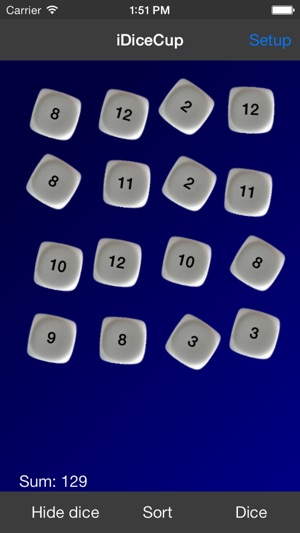 iDiceCup is the ultimate dice app for your iPhone, iPod touch and iPad. 1 up to 16 dice with up to 99 eyes can be diced by a keypress or by shaking the iPhone. The dice can be locked by touching them. Hiding the result is also possible (required for some games like Mexican). Naturally all settings a…