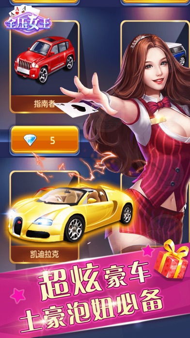 【全压女王】 是一款休闲类棋牌游戏,规则简单有趣极易上手,加之其娱乐性极强的特点,受广大棋牌爱好者的青睐。现在不管你是新手,还是资深的棋牌大师都需要考验胆略和智慧,外加上一点小运气。 推陈出新的玩法才能俘获玩家的心,游戏保留标准的玩法外,还新增了“淘金场”、“万人场”、“娱乐场”,在此都能体验一把尔虞我诈的刺激快感,下一个赌神就是你! 【游戏特色】 1. 经典模式:传统经典玩法比拼运气和智慧 2. 火拼模式:一掷千金豪赌爽,无限投注欢乐多,体验过山车般的刺激 3. 娱乐模式:玩累了可以来这里休闲娱乐 4. 时时彩:买的多,赢得多,一夜暴富成就土豪不是梦想 5. 全免费:应用完全免费 6. 免费送:金币免费送,登录送、注册送、下载送、升级送、每日完成任务送、破产还送 7. 刷排名:实时更新玩家场内排名,谁是高富帅?谁是土豪?是你还是他? 8. 享画面:干净简洁的界面、方便舒适的操作体验 9. 玩游戏:容量小、流量省、不发热超省电低碳又环保