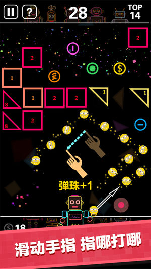 最好玩的物理弹球游戏! 超经典街机打砖块全新玩法! 无尽的弹珠!无尽的砖块!无尽的挑战! 再也不用担心弹球掉落!只要你够强,无限的砖块等你消灭! 滑动手指,滑动方向就是发射方向。 仔细瞄准,小小的角度会有很大的变化 利用反弹,找好角度,利用反弹创造奇迹 丰富弹球,多种酷炫弹球供你收集,每种都不同哦~ 超级耐玩,根本停不下来!还不快来下载!