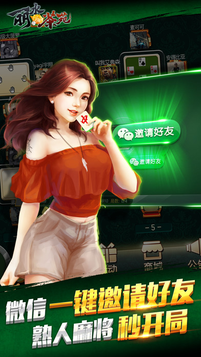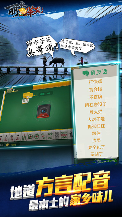 张学友推荐给您的丽水游戏!超强防作弊反外挂,誓死维护公平公正的游戏环境!千变、百变、火拼、双扣,丽水九县市麻将玩法全集!快来看看有没有你家的游戏呀。龙泉、缙云、遂昌、广东、松阳、景宁、庆元、云和,地区棋牌游戏全集! 【游戏特色】 双扣,丽水广东麻将,松阳麻将,龙泉麻将,随你挑选! 多重科技防作弊,维护绿色游戏环境,让你畅快安心玩游戏! 流量省,红包多,还有馆长当当,游戏交友赚钱三不误! 一键微信分享,拉上好友入包厢,熟人麻将马上开局! 金币场、比赛、好友私人房,玩法真当多! 【品牌介绍】 游戏茶苑创办于1998年4月,是国内最早自主研发和提供网络棋牌游戏的指明休闲娱乐服务商。一直以来,茶苑都本着公平公正的原则,研发、运营每个棋牌游戏,迄今已成功运营各类游戏超过百余款,种类涉及牌类、麻将、棋类、休闲游戏、网游、桌游、手机游戏等,其中较为著名的有千变双扣、百变双扣、火拼双扣、丽水广东麻将、青田麻将、龙泉麻将、丽水牛牛、丽水红五等,还有松阳麻将、缙云麻将、庆元麻将、云和麻将等其他丽水人爱玩的休闲棋牌游戏。是一款龙泉、缙云、遂昌、广东、松阳、景宁、庆元、云和,地区棋牌游戏全集!游戏茶苑历史悠久,游戏环境安全!玩游戏就选大平台! 【联系我们】 微信服务号:丽水茶苑【微信号:lishuichayuan】 丽水玩家游戏群:482949925 丽水客服咨询QQ:3033400037 丽水客服热线:4007202233 未开通400地区或海外用户请拨:021-51369888