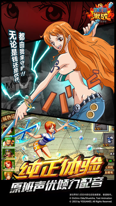 《航海王激战》邀请了田中真弓、冈村明美、山口胜平等数十位航海王原班声优参与人物配音。无论是路飞的“橡皮橡皮机关枪”,还是索隆的“三千世界”,玩家都从最强的打击快感与最还原的声优原声中感受动漫般最纯正的游戏体验。