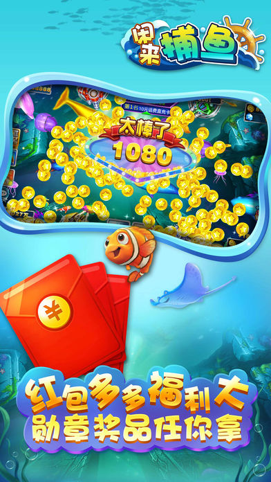闲来捕鱼是一款多人联网实时对战的休闲类手机游戏,强调极易上手与欢乐流畅的游戏体验,通过梦幻深邃的海底场景、自然精致的鱼群刻画、华丽爽快的捕鱼画面、创意无限的玩法设计、诚意十足的各项活动,使玩家仿佛置身童年幻想中的游乐场中尽情娱乐。 【游戏特色】 1.3D画面,海底探险身临其境 2.经典捕鱼,千炮金币爆不停 3.深海争霸,实力较量赢大奖 4.好友共聚,高额红包齐分享 5.百万惊喜,海量金币免费领 超嗨超刺激,快来一起领略真正的海底世界吧!