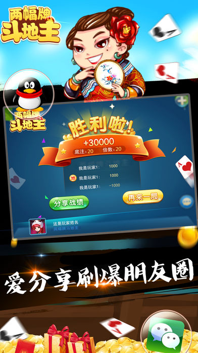 2017斗地主年度精品推荐! 两幅牌斗地主!两副牌,四人玩,创新四大天王癞子玩法,够新潮够刺激! 一款原汁原味的江浙斗地主,在浙江、江苏、上海广为流传。融合了博雅斗地主,欢乐斗地主,真人斗地主,天天斗地主,全民斗地主,单机斗地主中的精髓之处。比疯狂比全民比欢乐,麻将、德州扑克、双扣、掼蛋、炸金花、牛牛、拖拉机、掼蛋都弱爆了,够胆来斗地主吧!约牌QQ、微信、微博、陌陌好友,和玩连连看、天天酷跑、QQ飞车、消除、节奏大师、捕鱼Say Goodbye,天天玩红包版四人斗地主! 经典玩法+癞子玩法+比赛玩法,玩的就是刺激和心跳!还在玩QQ斗地主、途游斗地主、JJ斗地主、单机斗地主的,赶快加入全新四人斗地主游戏——两幅牌斗地主!亮出你的手牌,来一场公平的对决! 首创癞子玩法,大小王可以代替任何牌。炸弹+三带一+双顺+三顺,牌型多样,更有四王免战!支持微信分享与QQ好友分享,厉害了!我的斗地主! 【游戏特色】 1.创新玩法 经典+癞子+比赛,要玩就玩新潮流! 2.无敌颜值 Q版地主萌萌哒,视觉盛宴美美哒! 3.暖心游戏 无注册无广告,一键注册轻松玩爆! 4.任性福利 玩游戏接红包雨,百万红包大派送! 5.公平竞技 免费红包赛,真实玩家大PK! 【联系我们】 建议反馈,欢迎随时联系我们: 客服QQ:3316524829 交流群QQ: 476710606 微信公众号:乐享棋牌 邮箱:lexianggame@163.com