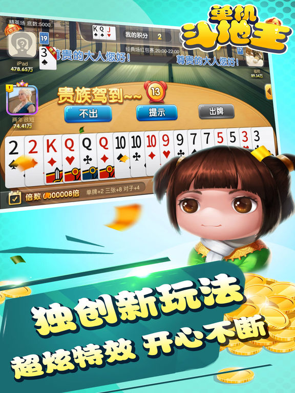 说出来你可能不信,但是我真的没有骗你,我们真的是最经典的斗地主! 我们不需要流量就可以玩,随时随地都能玩! 我们的电脑特别厉害,感觉就是斗地主九段,我一局没赢过! 不用充钱,不用欢乐豆,不用Q币,不用RMB,随来随去! 多种道具,多样特效,打牌就跟看电影,超爽! 自由控制是否联机,想打人就打人,想打电脑就打电脑! 还在等什么? 还不快来!! 游戏特色: 1. 免费超快下载,占用空间超小,不耗电量,更不耗流量。 2. 玩法丰富多样,经典玩法、懒子玩法。还有更多其它小游戏刺激惊险,爽翻天! 3. 游戏画面精美,特效精湛,玩牌就像看电影。 4. 联网单机随意切换,想打电脑就打电脑,想打人就打人。 5. 真人美女陪你来玩,打牌撩妹两不误! 斗地主是流行于湖北武汉、汉阳一带的一种扑克牌游戏。游戏需由3个玩家进行,用一副54张牌(连鬼牌),其中一方为地主,其余两家为另一方,双方对战,先出完牌的一方获胜。当初有一群“跑得快”痴迷者,经常在人数不足的情况下玩三个人的“跑得快”,起初并不叫斗地主,他们圈内的人叫“二打一”。斗地主首先命名的牌型是飞机,然后是火箭,1995年,“二打一”正式命名为“斗地主”。如今已风靡整个中国,并流行于互联网。斗地主、德克萨斯扑克及百家乐是世界上三种最流行的扑克游戏。