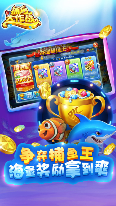 捕鱼大作战是一款多人联网实时对战的休闲类手机游戏,强调极易上手与欢乐流畅的游戏体验,通过梦幻深邃的海底场景、自然精致的鱼群刻画、华丽爽快的捕鱼画面、创意无限的玩法设计、诚意十足的各项活动,使玩家仿佛置身童年幻想中的游乐场中尽情娱乐 【游戏特色】 1.3D画面,海底探险身临其境 2.经典捕鱼,千炮金币爆不停 3.深海争霸,实力较量赢大奖 4.好友共聚,高额红包齐分享 5.百万惊喜,海量金币免费领 超嗨超刺激,快来一起领略真正的海底世界吧!