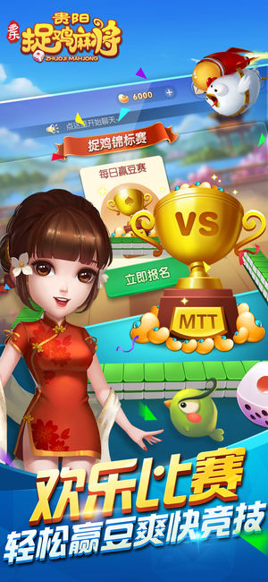 正版贵阳麻将、遵义麻将、贵州麻将,有鸡有豆,胡牌再捉鸡! 【贵阳捉鸡麻将】 贵阳捉鸡麻将——贵阳捉鸡麻将起源于贵州地区,流行于贵阳、四川等地区。贵阳捉鸡麻将以其独特的玩法、绝对刺激的游戏规则,得到全国各地麻友的推崇!只有万、条、筒,不可以吃,可以碰杠。更有地道的冲锋鸡、责任鸡、摇摆鸡、满堂鸡玩法。 【三丁拐】 三个人的麻将,也叫三人拐、三敦拐。只有万、条、筒,不可以吃,可以碰杠。和四川麻将一样,需要定缺,胡牌必须缺一门花色。同时还有原缺、冲锋鸡、责任鸡、连庄等玩法。 【二丁拐】 二丁拐也就是二个人玩的麻将,规则和三丁拐相似,也是贵阳麻将里的特色。 【遵义麻将】 遵义麻将是流行于遵义地区…