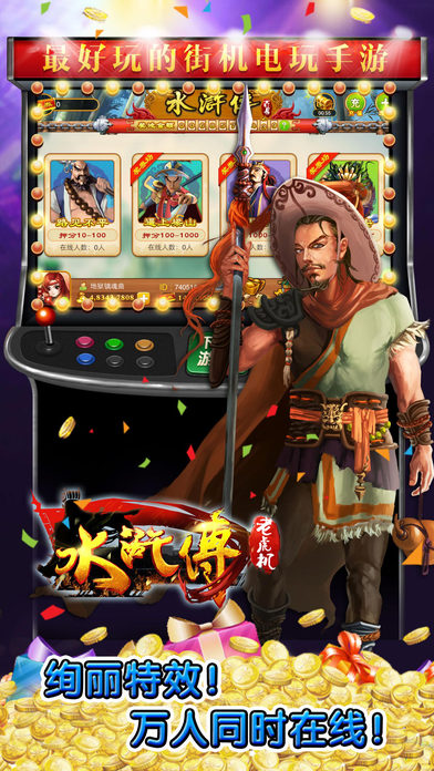 ◆2017年国内首款完美移植老虎机水浒传隆重上线!◆ --■动感界面■绝美画面,炫酷特效,如幻如真的古典配乐 --■极致体验■狂热!火爆!百万玩家共赴梁山!亿万奖池等你来拿! --无需注册,免费下载,立即开玩! 【游戏特色】 1、古代与现代的完美结合,史诗般的街机大战! 2、独特的左右靠边算法,每根线左右靠边都可算分! 3、中3个或3个以上“龙头”,即可进入小玛丽环节,疯狂派彩,根本停不下来! 4、逼真的3D人物,古色古风的动画,超级刺激的比倍游戏,只要敢搏,奖励翻番无上限! 5、完全街机话的数值,拼胆识,拼运气,绝无吃分的可能! 6、独特的银行功能,双重保护,再也不怕账号资金丢失! 7、百万人在线共夺奖池大奖!