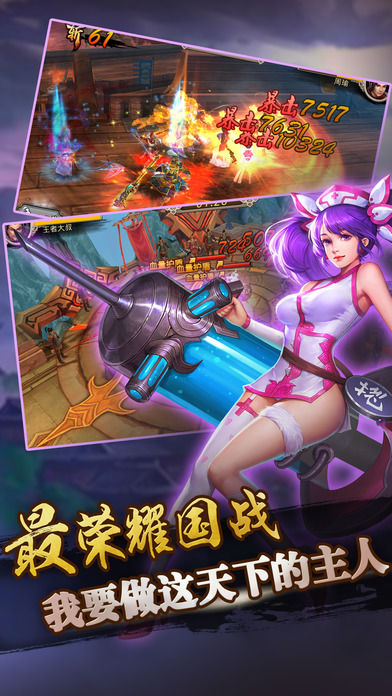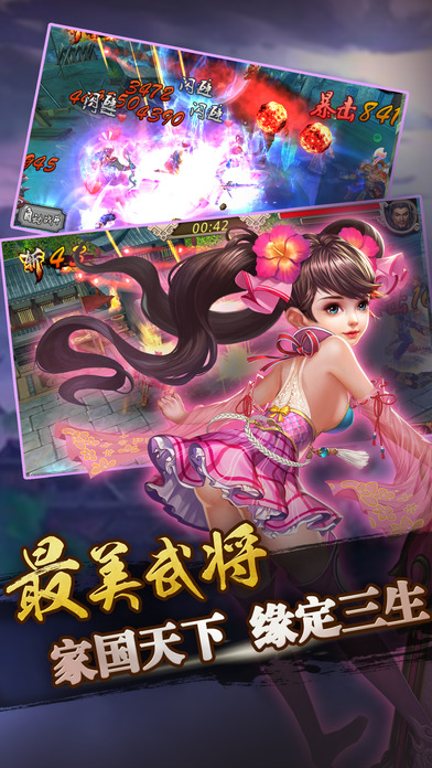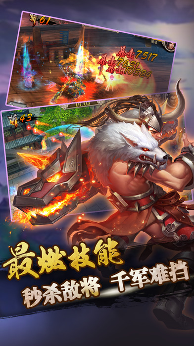 2017最劲爆三国动作手游火力全开!募名将,秒BOSS,三国群雄等你指挥! 军团战,跨服战,多重玩法任逍遥! 更新内容 1.大量福利来袭,三日登陆送赵云,购买月卡送关羽,更有海量元宝送不停。 2.新增兵书战马,军团战魂培养机制,助你打造属于自己的最强英雄。 3.新增武将蔡文姬、魏延、马超,已添加至限时卡池。 【游戏介绍】 孤鸿飞影,天隙流光,雄胆上将世无双。 礼崩乐坏,仙魔倾覆,倾世豪杰寇无数。 秦失其鹿,天下共逐,裂土封疆有还无。 匹夫无罪,怀璧其罪,天下英雄谁敌对。 过关斩将其疾如风。 阵列肃立其徐如林。 攻城拔寨侵掠如火。 割据护宝不动如山。 八大试炼,无尽磨砺。给你最精彩的游戏体验。 三轮决战,胜者为王。真正的强者才能立于荣光之巅。 极致战斗,流光掠影。缤纷的战斗下是最强大的策略。 *****联系我们***** 如果您喜欢我们的游戏,或者有什么宝贵的建议,欢迎您给我们留言、评论!