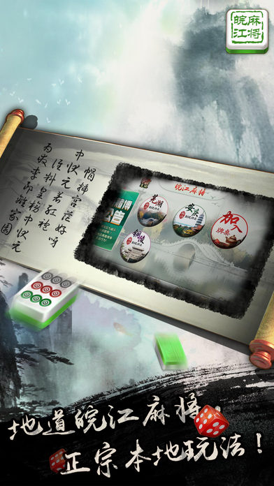 皖江麻将是一款地道正宗的安徽麻将游戏,玩法覆盖皖江多个市区,随时随地熟人线上组局,无外挂,安全便捷,安徽人必玩。 游戏特色: 1、画面美:游戏界面采用水墨风格,画面精美,优雅,赏心悦目! 2、更灵活:完全自主选择自己想要的游戏规则!语音聊天实时互动! 3、更安全:全程防作弊,每局牌都可回放。可显示玩家间距离,绝无外挂!