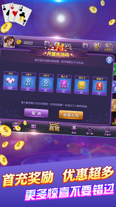 斗牛,又名牛牛,年轻一代将其爱称为“全民斗牛”。最早流行于江浙一代,可同时多人进行的简单押分类棋牌游戏。斗牛满足坐庄条件玩家可坐庄,闲家分别与庄家比较牌型大小定胜负。牌型依次大小为:大王、小王、K、Q、J、10、9、8、7、6、5、4、3、2 、A。 玩法介绍: 1.一副牌,去掉两个王,总共52张牌,2-6个人玩,每人发5张牌。 2.庄家确定: 第一局系统随机指定庄家,直到庄家拿到无牛牌后,庄家变为下一家。(无牛下庄)。牛9上庄。 3.大小比较: 所有家发完5张牌后和庄家进行比较,确定大小。 全民斗牛的牌的大小是从大王、小王、K、Q、J依次往下计数的,A是所有牌中最小的。玩家必须将手中的5张牌分为两组,第一组牌数为3张,第二组为2张。如果这里出现的两组牌中,点数成为10的倍数的话,就是获得胜利的。[1] 注意:虽然K、Q、J和10这四张牌在算点数时同为10点,但在比较大小时,并不等同,而是按K>Q>J>10的规则。