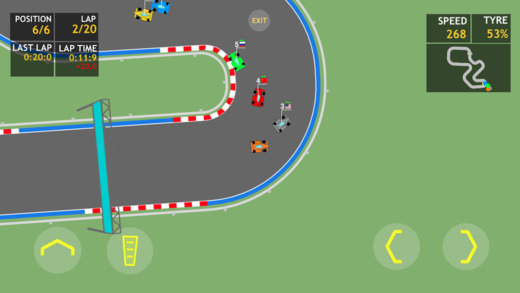 Mini Racer is an intense top down racing game. To win the race just pure driving skills is not enough, you need to be a thinking driver and plan your race well. The game has following features: - 10 challenging tracks with various track characteristics. Some are bendy, some has long straights, some tracks are narrow and some are wide. Each track will pose different challenges to you. - As you race your tyre will degrade so you need to take pit stops and get fresh tyres to stay in the game. You can time your pit stops strategically to get a jump on your rivals. - The race has an active weather which can have an impact on the result of the race. If it rains, you need to put on wet tyres to get better performance out of your car. - Based on your race standing you get upgrade points to upgrade your cars performance. Go out there and see if you can become the champion. Good luck