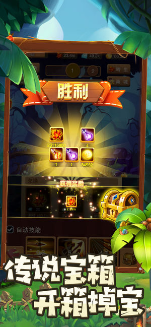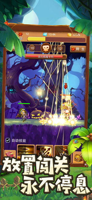 这是一款Q版魔幻风格的角色扮演放置挂机游戏。自动放置战斗,单手操作体验战斗快感。技能符文DIY,随意搭配个性技能。拥有多品质多类型的武器装备可供收集,更有多种装备附加属性给你提供强力支持。 【游戏特色】 -无法停止的战斗,无限的关卡无限的挑战。 没错您没有看错,关卡是无限的!无限的!无限的! 不信?您来试试! -打怪,掉金掉宝,强化自身,挑战更高关卡。 打不过?不可能的。怪物少?不存在的。 勇士啊,通关之路上只有不断向前,光明大陆自会逐渐显现! -关闭游戏后也在战斗,重新进入游戏获得大量金币。 没错,这个操作real爽,就是这么人性化的游戏设计 忙碌过后再次打开游戏能收到满钵金币,就问你…
