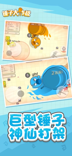 这是一款超好玩,超爽快,超有挑战性的休闲解压游戏! 拿起你手里的锤子,化身成圆圆的小果冻,锤爆敌人,成为全场最强就是你的目标。一锤一个不要犹豫~ 在这场刺激感十足的战斗中,忘掉顾虑,甩掉负担,尽情锤起来吧! 游戏玩法: 1.操作摇杆,控制英雄风骚走位。 2.挥动你的锤子,吃豆豆,锤地鼠,干掉其他玩家,升级进化获得更大的锤子。 3.暴走技能加Buff,狂暴疾走,一锤一大片。 游戏特色: 【爽快击杀】 一锤到底,锤锤到肉,炫酷无比的特效,爽快的打击感,随时随地让敌人灰飞烟灭。 【休闲解压】 996压力太大?作业太多写不完?锤就完事了! 是时候放下顾虑,放下忧愁,来一局锤子大作战,立刻缓解…