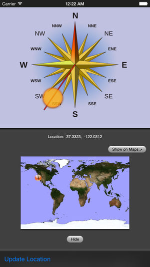 这软件把很有用的指北针加给你 iPhone 和 iPod Touch 。只要看太阳、知几点种,就能定北。你在外边玩,或是去山川逛游、或是在外地骑车等,这个软件会帮你知路。不正的磁性对这个罗盘没影响。