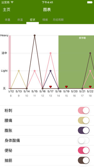 经期跟踪器,跟踪女性经期的最简易方法! 经期跟踪器简单小巧。 * 在每月月经开始时按下按钮。经期跟踪器将记录经期日期,并根据最近 3 个月的月经周期计算平均值,从而预测您下次月经的开始日期。 * 使用简单明了的每月日历视图,查看您当月或未来的经期日期、排卵日和受孕时间以及您的情绪和症状信息。 * 使用外形美观的图标装饰您的 iPhone,该图标会显示在主页屏幕上,因此请谨慎选择。它仅显示为 "P Tracker"。 经期跟踪器具有多种功能。 * 记录经期每天的情绪和症状 * 可将您的经期日期和备注通过电子邮件导出以进行备份或供就医时使用。 * 查看到下次月经前的天数或推迟的天数。 *…