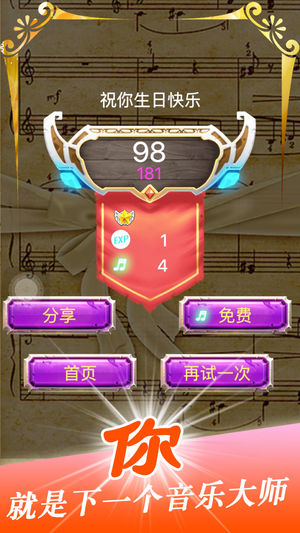 不要踩白块儿2之别踩钢琴块2全新来袭,是时下最流行的休闲、娱乐、打发时间的利器! 全新玩法,坚持玩,每个人都会成为钢琴大师! ◈ 200+首好听的音乐(持续添加中…) ◈ 简单易玩,老少咸宜 ◈ 几十种游戏主题,支持同时多砖块换肤 ◈ 美妙的钢琴音效 ◈ 顺畅的游戏体验 ◈ 支持社交网络分享,随时炫耀成绩 ◈ 专门为高分辨率的设备优化过 警告,这个游戏很容易上瘾,自制力不好的人慎玩! 玩法简单,过程精彩。你能做到眼到手到的境界么?快来体验吧! 我踩、踩、踩…… 这些模式大部分你都没有玩过,只能在游戏中体验. 特性: *简单易玩,地铁、公交打发时间的利器。 *支持社交网络分享,我们玩的,他…
