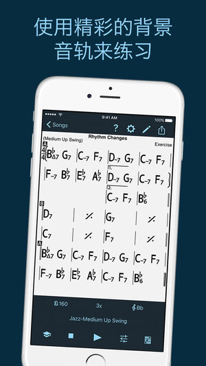 熟能生巧。 iReal Pro提供了易于使用的工具,帮助所有级别的音乐家掌握他们的艺术。 它模拟一支音色逼真的乐队,在您练习的时候为您伴奏。 这个应用也让您创建和收集您喜爱的歌曲的弦图表以作为参考。 ~2010时代杂志50项最佳发明之一~ 数以千计的音乐学生、教师以及世界顶尖的音乐学校 (如伯克利音乐学院及音乐家学院)都在使用它。 “对于一个在练习当中的音乐家来说,它是一项完美的科技:优质的数字音像、可混音、可变调至任何音调并且是完全流动性的。 现在每位有抱负的音乐家都有一支备用乐队在他们的口袋里”。– Tim Westergren, Pandora创始人 • 它是一本乐谱: 创建…