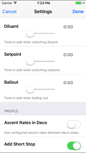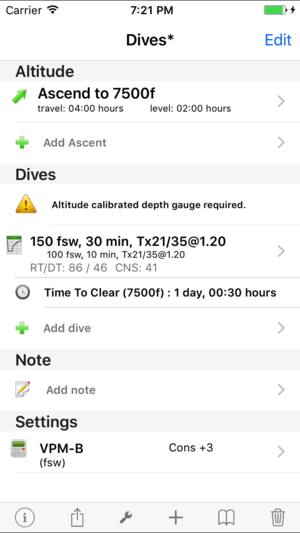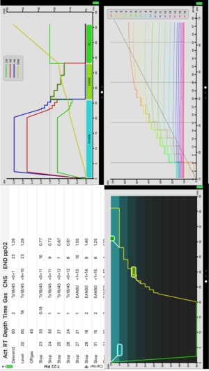 Tool for planning staged decompression dives for technical divers. Supports open circuit and closed circuit rebreathers, multi-level and repetitive dives, nitrox, trimix, altitude adjustments, metric and imperial measurements. Keeps track of gas consumption, OTUs and CNS. Per dive configurable asc…