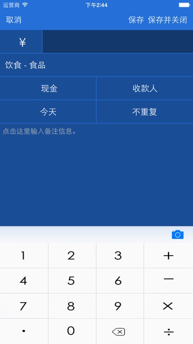 这是一款非常易于使用的手机记帐软件。本软件主打就是最方便使用。如果一款手机记帐软件需要繁琐的操作和大量的时间才能记下一笔消费记录的话,那你一定不会长期坚持使用他,说不定使用几天后就因为麻烦而放弃。 本软件的方便易用可以让你随时随地随身记下每天的花费,可以方便地知道自己每天每周每月花了多少钱,这些钱花在哪些方面了,从而进行自由的花销控制。 本软件的特点: - 支持多帐户,可以建立如信用卡,银行卡,现金,支付宝之类的帐户。 - 支持不同币种的帐户,支持多帐户间的转帐。 - 非常简单直观方便易用的界面。 - 录入消费记录的步骤非常简单,一两秒即可快速完成录入。 - 自动循环消费,比如,每月的房租等固定开销。 - 完全自定义消费分类,你可以增加修改删除分类信息。 - 自定义分类的排序,自定义帐本,帐户,商家的排序。 - 针对消费类别的图形分析,很方便知道你的钱花到哪里去了。 - 非常直观的历史浏览功能,方便地知道你每天/每月花了多少钱。 - 密码保护功能,保护你的所有记录。 - CSV 输出,支持自定义数据范围,方便在台式电脑里进行消费分析和统计。 - 支持导出附带消费单据图片的HTML文件。 - 支持USB数据线备份/恢复数据 - 支持通过Dropbox在线备份与恢复。 - 支持通过iCloud在线备份与恢复。 ----------------------------------------------------------- 如果在使用中有任何问题,请与appcheer@gmail.com联系。或在留言中留下你的邮件地址,方便我们及时与你联系,解决问题。