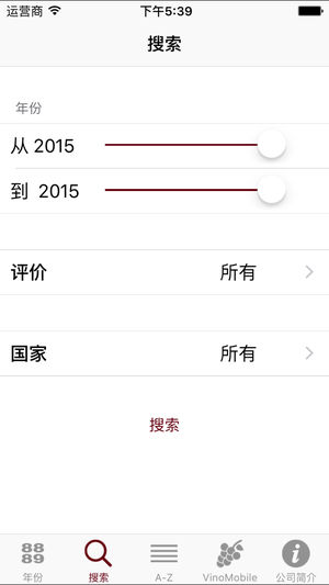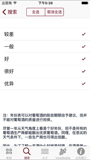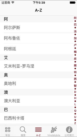 VinoMobile®“年份”应用程序共包括直到2015年的约5000个年份评价! 国家(130个葡萄酒产区) ----------------- 法国、意大利、西班牙、葡萄牙、德国、奥地利、瑞士、美国、阿根廷、智利、南非、澳大利亚、新西兰 年份: ------- 从1912年:最佳波特 从1945年:最佳波尔多 从1980年:其它大多数葡萄酒产区 …直至2017年(2017=预测) 评价总数: ------- 5'000 查找: ------- 您不太了解邦多勒、查理曼或是弗拉斯卡蒂源自哪个产区?直接从约550个索引中选择葡萄酒产地。您将会被引领向确切的产区(比如:邦多勒->普罗旺…
