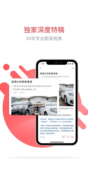 【南方周末app自6.0版本起全面改版升级!】 现在下载全新升级的南周app,享受更优雅的阅读体验,随时随地获取深度报道。 南方周末是深具公信力的严肃新闻媒体。自1984年创立至今,一直深受用户信赖,目前超过千万用户正通过《南方周末》读懂中国。 【应用特色】 1. 独家调查报道 三十多年独立视角,几代新闻人的专业积累,篇篇原创,绝对重磅 2. 专业深度评论 专注时政新闻,同时提供涵盖社会、经济、商业、环境、科学、教育、文化、军事全领域的深度分析 3. 南周严选精品课 南周品控,精心打磨。全面升级你的知识格局,让碎片时间有价值 4. 重要新闻消息提醒 专业团队精选新闻,实时推送时事资讯。第一时间…