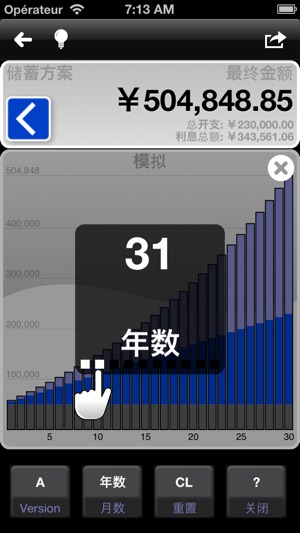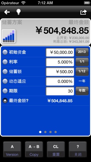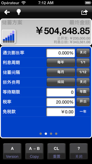 MarkMoney贷款及财产计算器 MarkMoney是只要几个步骤就可以计算出贷款或抵押贷款额,或者制定储蓄和提款方案的独一无二的工具。在计算普通的财富增长时MarkMoney还带有额外的利滚利和通货膨胀计算器。 Markmoney的基本结构跟普通的便携式计算器一样。其上部用于输入数据,下部则显示结果。App的一个重要特点是,几乎每个数据输入栏都可变成结果显示栏。 例如: 如果您想知道当利率为5%时,每月要存多少钱,才能在20年后存款达到10万欧元。在这种情况下 ´´存款额´´ 这一栏会标记为结果显示栏。原则上几乎每个数据输入栏都可标记为结果显示栏,这样能迅速,专业地回答您在关于贷款咨…
