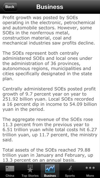 China News, 24/7 English Paper is a very simple e-news reader for the people of China. This app brings you the latest news from all the top China news sources in English The news is categorized as, China(National Stories) Top Stories Business Sports World Entertainment Lifestyle Science & Technology Politics Photo Editorials Asia pacific Opinion Health > Offline Caching of News (Works with out internet connection) > Emailing of news articles > Customized news table view > iOS 4.0 & iPad Compatibility > Supports both RSS & Atom feeds > Portrait & Landscape orientation